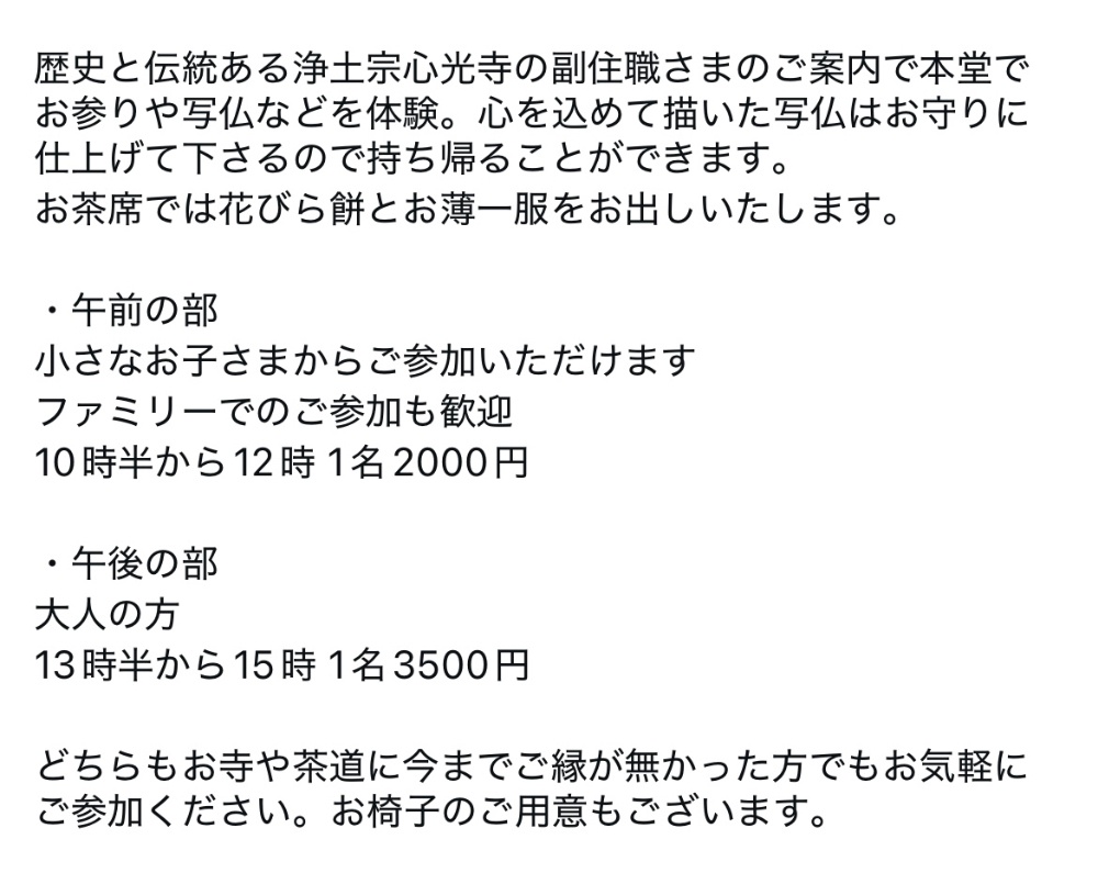 (幼児さんから付き合い保護者さままで同額)